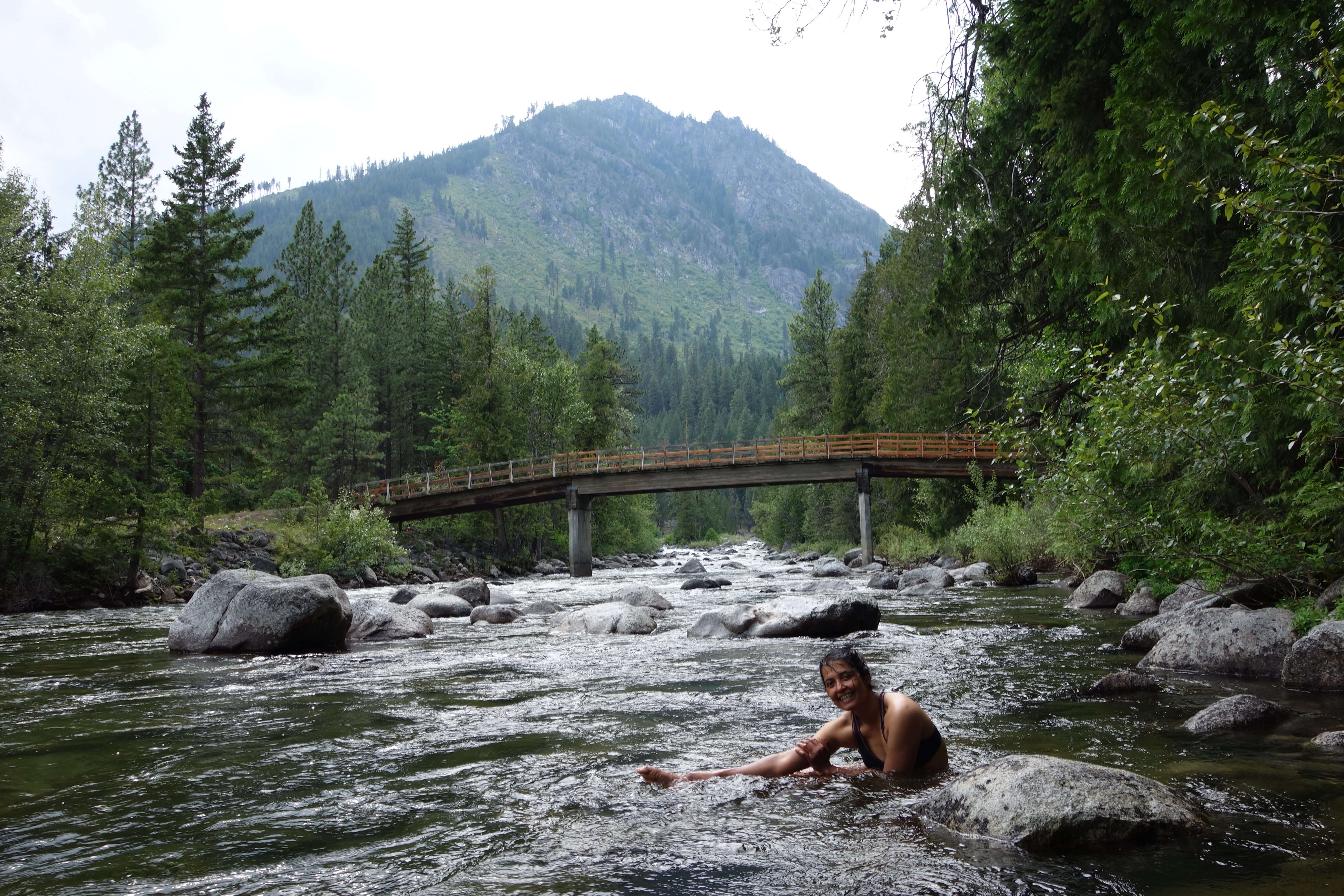 I dipped into the ice cold river in order to feel a bit clean after two days of sweat and dirt. It was quite refreshing.