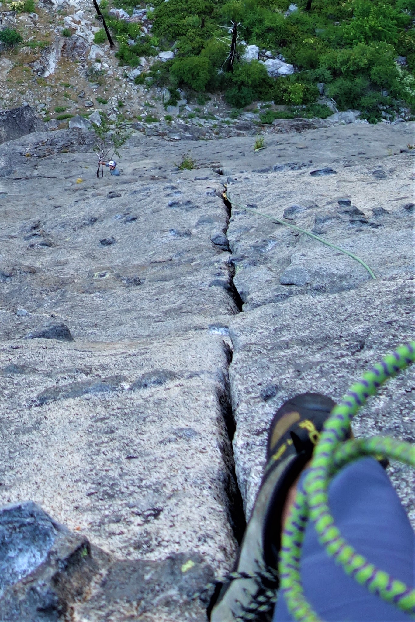 Pitch five started as a short finger crack to a fun cruiser hand crack. This was my most enjoyable lead despite the fact my pro was quite sparse from having to ration my #1/#2 cams. There are an abundant amount of knobs so you can avoid jamming your feet into the crack and just walk up on hand jam after hand jam.