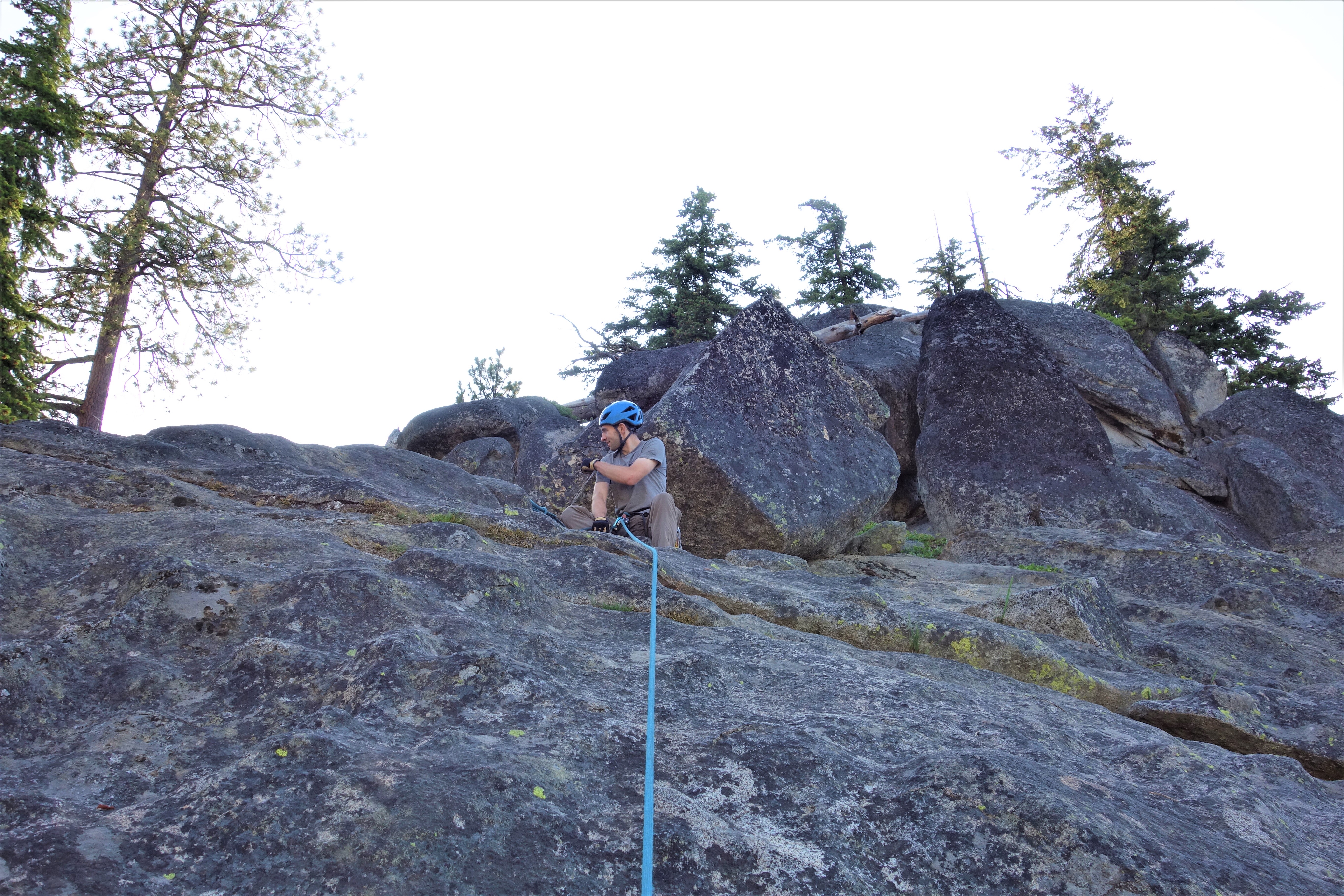 Then we headed to another crag down opposite to the Eightmile Campground. Rick again onsighted a 5.9 mixed-pro slab and put a toprope burn on a 5.10b slab crack.