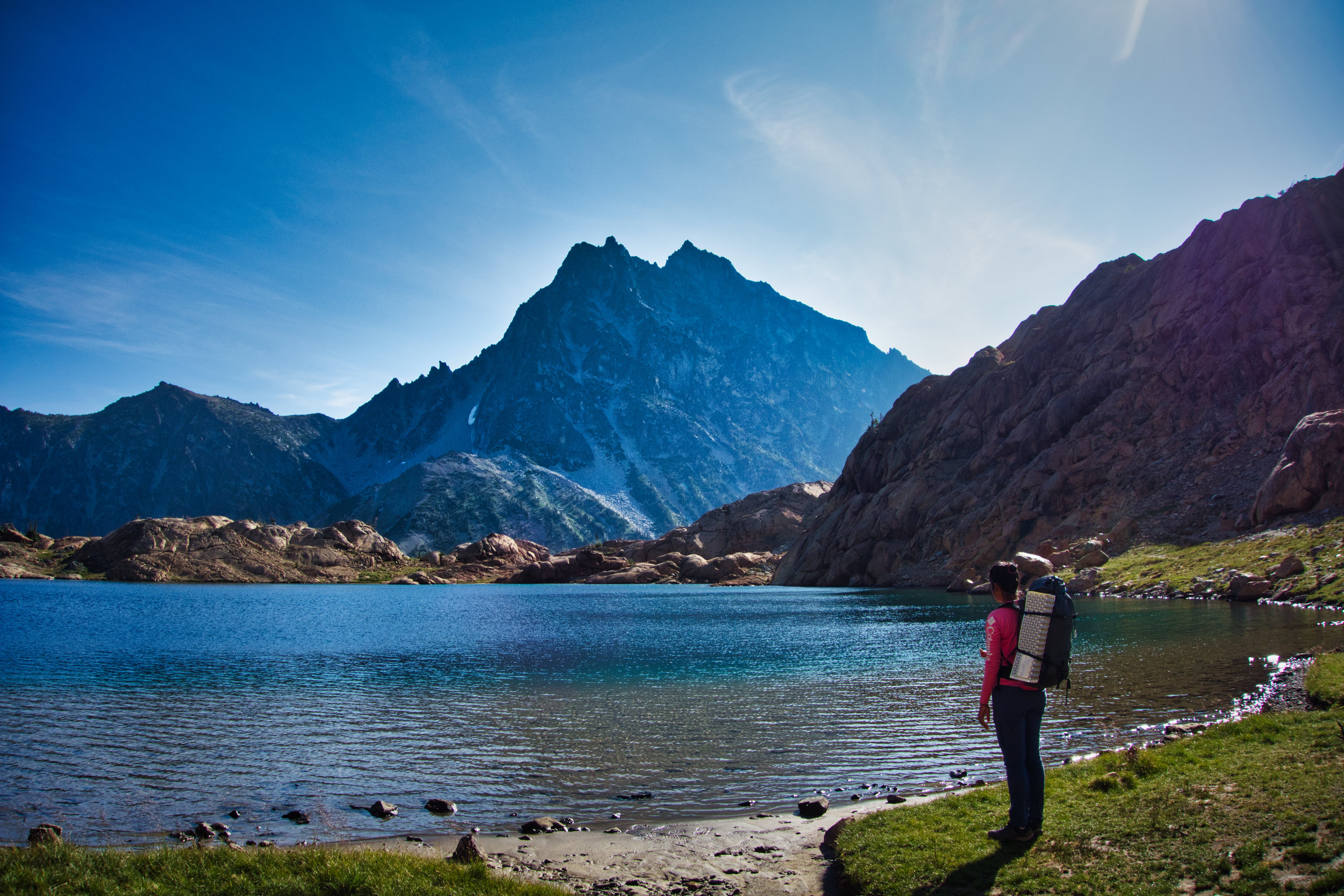 We had been watching the weather for a 2-3 day window with relatively moderate wind speed and the auspicious weekend finally arrived. We drove from Portland on Thursday at midnight and reached the Esmerelda Trailhead for the south approach via Ingalls Lake at 5:30 am. After a couple hours of snoring in the car, we started hiking shortly after 7 am. We made good time up to Ingalls Lake, each only carrying 750 ml of water and refilling at each water source.