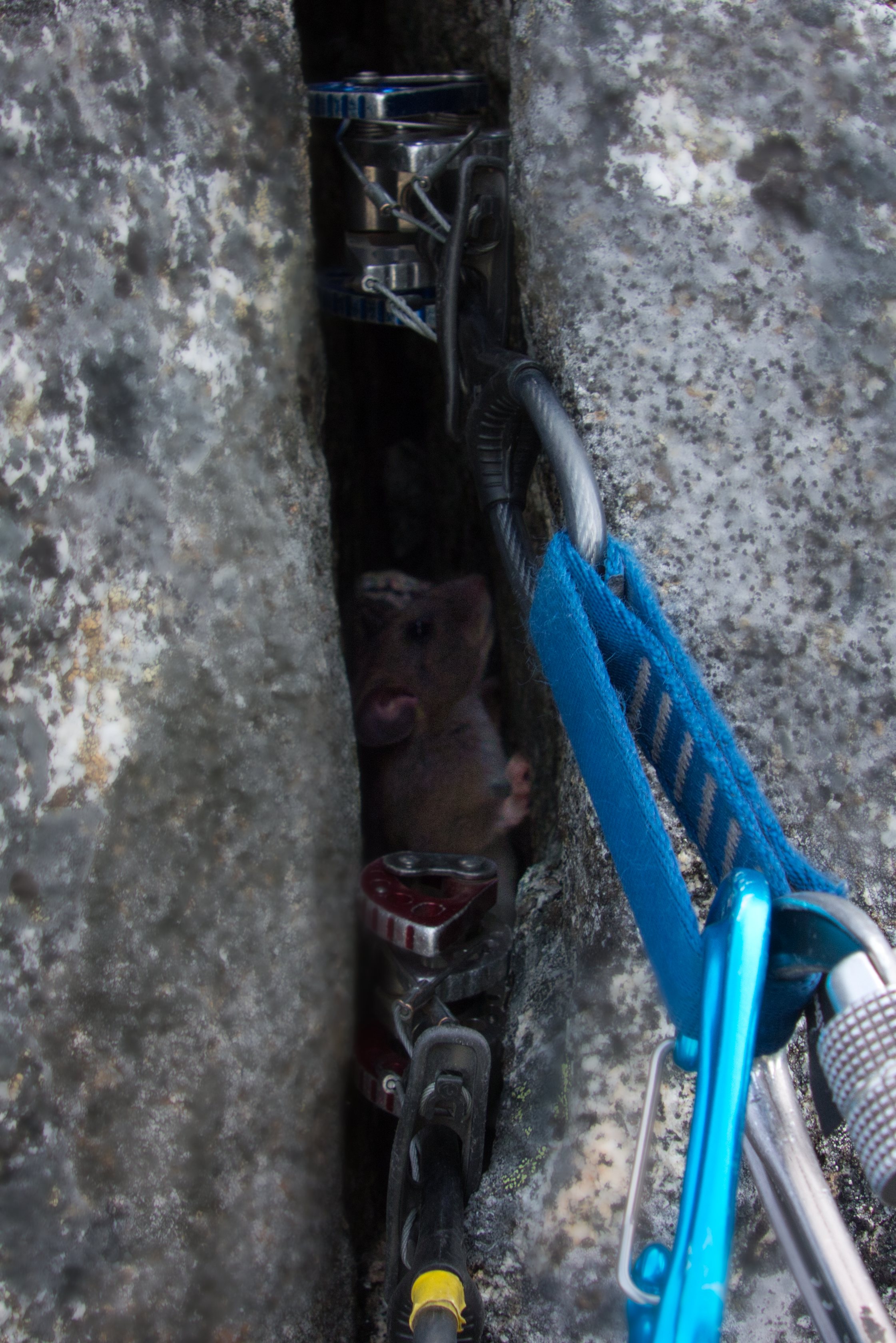 • We had initially planned to haul the crux pitches, but due to the number of parties starting Saturday I just led the crux pitches with my overnight pack on. The fact I could lead near my limit with a pack says a lot about my limits being mental rather than physical, and opens up other interesting options for multi-day climbs.
