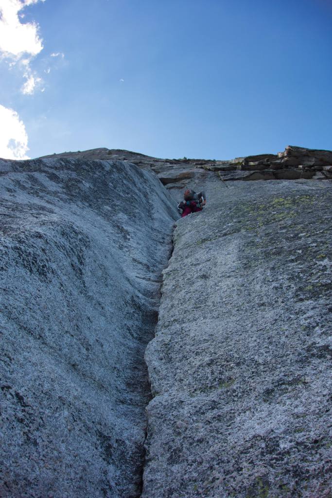 The weather wasn’t looking too great for Monday, so we decided to start early and run out the pitches to lessen the belay changeovers. From what we’d read the climb had ledges every 70 meters or so, and could be cut down into a 7x70m block, with seemed like way too much fun to pass up.