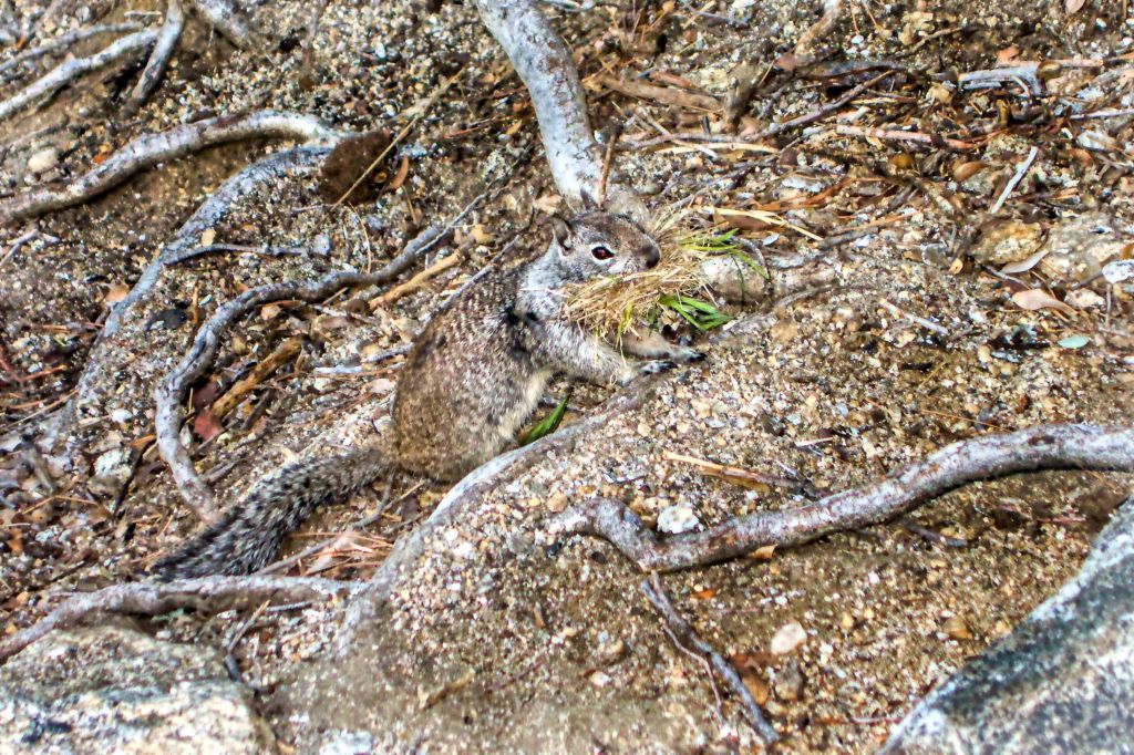 We started climbing at about 4:30pm. According to Rick the first pitch took over 45 minutes, but he amused himself taking pictures of squirrels (see below). It did not look as daunting from below so I started the lead. I had used most of my .75 to #2 down low and was left with two #3 for the second half of the pitch. I was contemplating whether to lead further or just belay half way but we were also running short of time so I went for it. I placed both of my #3 below the OW and was comforted to see a fixed cam. Now comes the OW with no pro, I thrutched up it with my back on the right wall and the right shoulder in the OW and got to the ledge. As I was belaying Rick, I looked up on the second pitch and thought I definitely need a break from the stress but by the time Rick was up I was ready to go on to the next pitch. When Rick ascends a pitch and sits down at the belay with a serious face, that confirms to me that he found it hard too but that also makes me proud that I led something which he found difficult. He’s been obsessively onsighting 5.10+ trad pitches at Lower Gorge, Smith Rock lately, whereas I have led only one 5.10- at the same place with three takes.