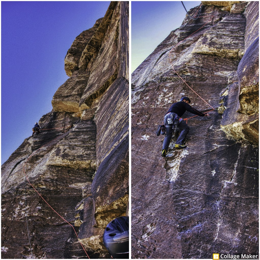 Pitch 2 (right picture): With all the delay we might have started pitch 2 at 9:30ish. Significantly easier pitch, run out but easy climbing.