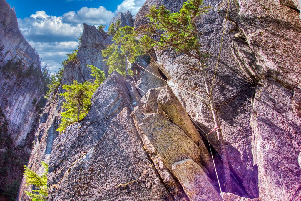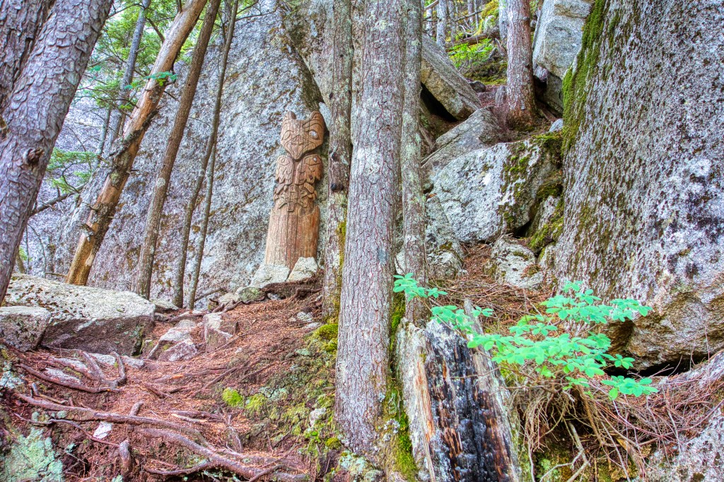 Hike the trail until you see the totem then follow the blocky terrain to the base of “The Acrophobes”.