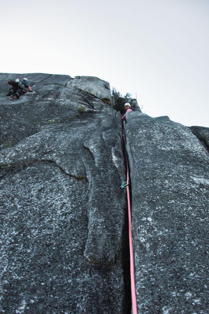 It’s our fourth day in Squamish, and a heatwave crashed our afternoon single-pitch plans. So, we started waking up at 5:30 am every morning, grabbing lattes and delicious pastries from Cloudburst Café (RIP Zephyr Café, we loved you) at 6 am, and heading to the Apron parking. We were always the first ones at the base of all our climbs.