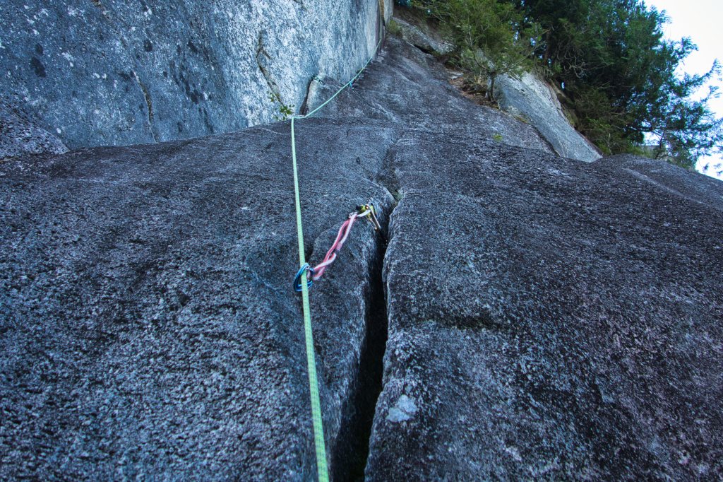 P3 (5.9, 40m): Our direct line. This is great cruiser hand crack until the steeper part up top which is off width (OW). We had two #4s and both were useful. I thought the difficulty was almost the same as Vector P3 which was 50m long.